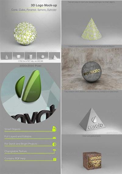 3D Logo Mockup (3D徽標 立方體 圓柱體 球體 圓錐體和金字塔) 素材版(DVD一片裝)
